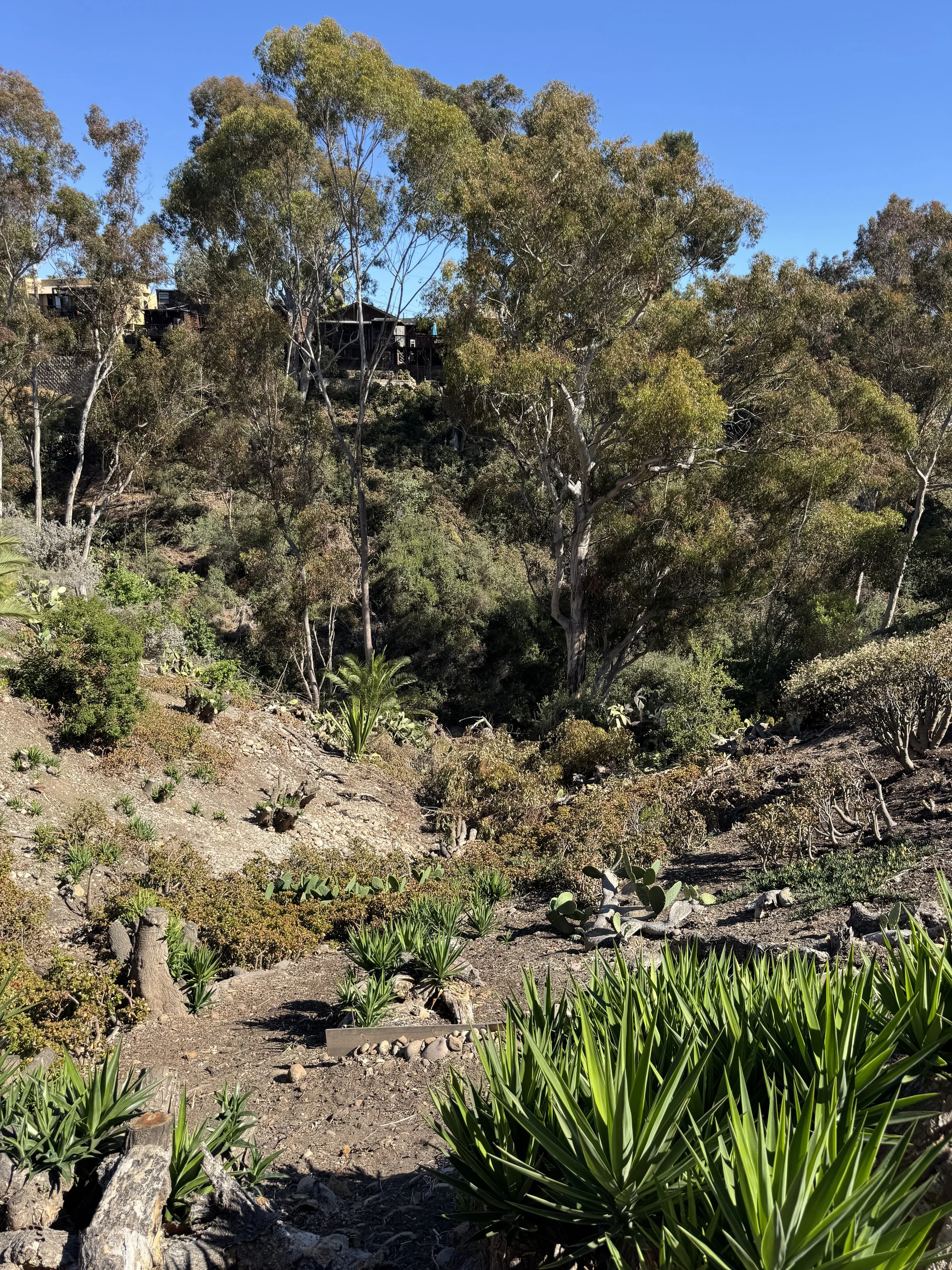 The project first began last fall when Orlesky and Oliver realized just how much of a fire danger the canyon behind their home presented. With heat waves rolling through San Diego more regularly, dead plant debris piling up, and small stove fires from encampments occurring more and more frequently, they decided to take action.