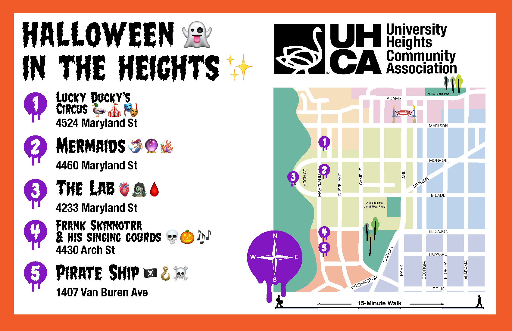 Gather ‘round, folks! Join us for the biggest, most creative Halloween celebration in all of San Diego County, right here in University Heights. Halloween on Maryland Street has been a tradition for decades, featuring magical trick-or-treating houses with themed displays like a spooky science lab, an animatronic dragon named Norbert, singing mermaids, film noir showings, dancing gourds and skeletons, movie and book-themed showcase houses, and more!