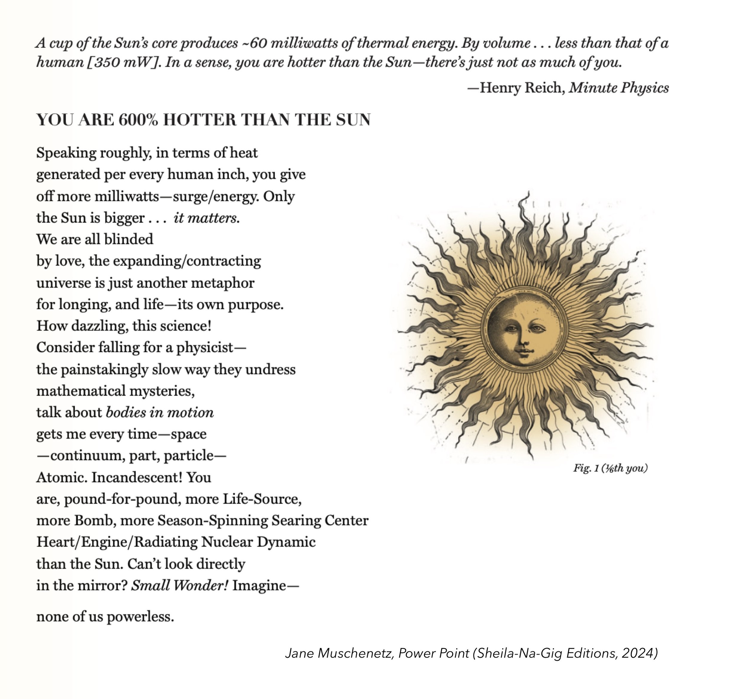 Jane is the author of POWER POINT (Sheila Na Gig, 2024) and All the Bad Girls Wear Russian Accents (Kelsay Books, 2023). An award-winning poet and speaker, Jane has appeared in MIT Technology Review, KPBS Midday Edition, Spoken Word Paris, and elsewhere. Jane earned her MBA from MIT Sloan and her BA in Political Science from University of California, San Diego. Connect with Jane and her work at www.PalmFrondZoo.com.